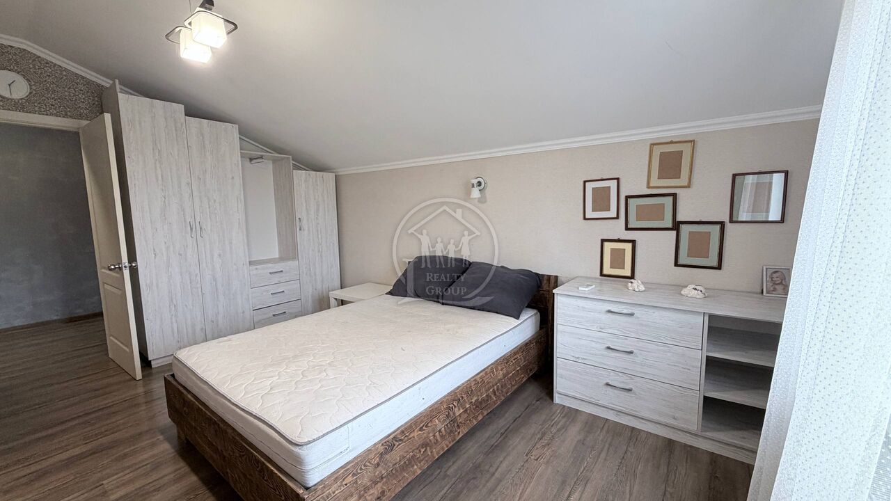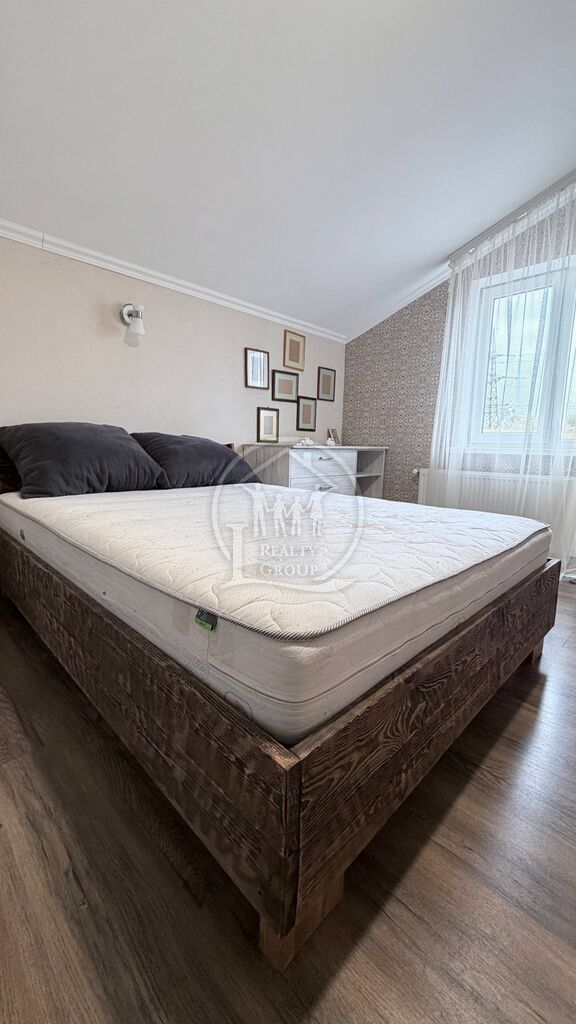 Складається з 4 спалень, двох санвузлів, кухні їдальні (23 м2) та заскленої тераси (33 м2).